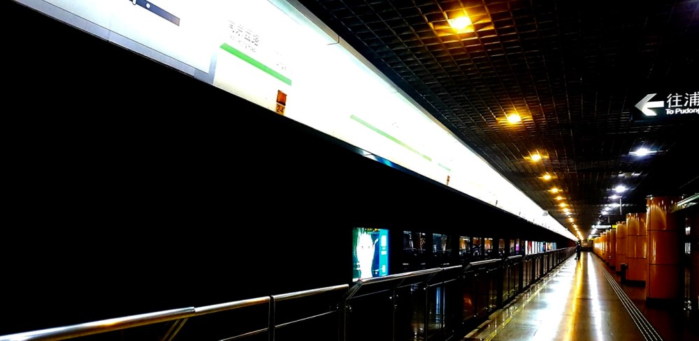 While you wait for the train at West Nanjing Road Station, you see what you seldom see on the Shanghai Metro and hear what you seldom hear – a vast geometrically receding plane of empty platform and an eerie cavernous silence.