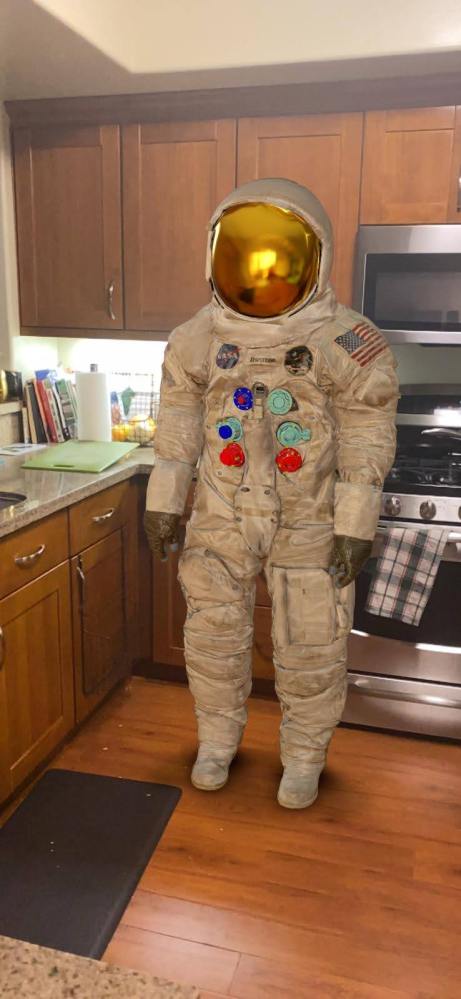 Ping. There is one last photo from M. It is her and her son outside, no masks, no Moon, only sunshine. And behind them a big print of Neil’s famous words, “that’s one small step for (a) man, one giant leap for mankind.” The ‘a’ is in parentheses because we never heard the ‘a’, he probably didn’t actually say it. Even Neil said “I have listened to [the recording of his words], it doesn’t sound like there was time there for a word…on the other hand, I think that reasonable people will realize that I didn’t intentionally make an inane statement, and that certainly the ‘a’ was intended, because that’s the only way the statement makes any sense.”