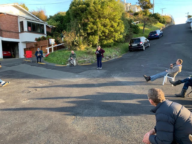 The next time, there were rules, the idea of Bubbles having permeated our consciences. The street was marked out with chalk, and dogs were forbidden. Once or twice those sitting in the middle of the street had to move when a car drove down. But a new caution was evident in drivers. Our neighbours are a mixed bunch, two single older people living behind us in their own small houses. Some couples with adult children, most of whom have left home. Rob and Leni, younger, both in the food business, lamb and gelato ice cream, had more than most of us to lose. Rob and Philippa recently moved to the city from Manapouri after finding their B&B heritage house accommodation business badly affected. Kiwis don’t like staying in old houses, they told me.