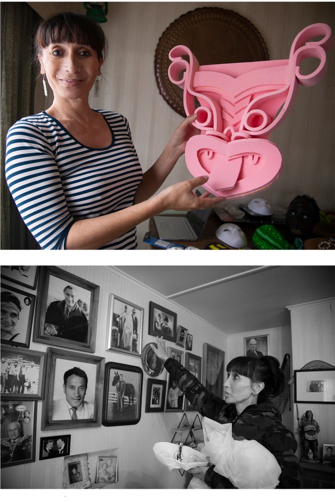 Nephi talks more about her role as carer. ‘When you are a carer, you are holding so much in. You have to be really patient and show a lot of virtue when you are looking after a parent. You can’t just snap. You have to bit your tongue and that causes a lot of suppressed energy. So one mask that I made like a blank canvas represented that feeling – like the a scream you can’t hear. That’s what it feels like. No one knows what’s happening inside you.’
