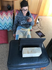 ‘My writing course is continuing via ZOOM – an application platform online. 12 of us can go online at the same time and talk about our stuff. It’s so cool! Our professor has given me some advice – “it’s your words – write what only you can write”.’