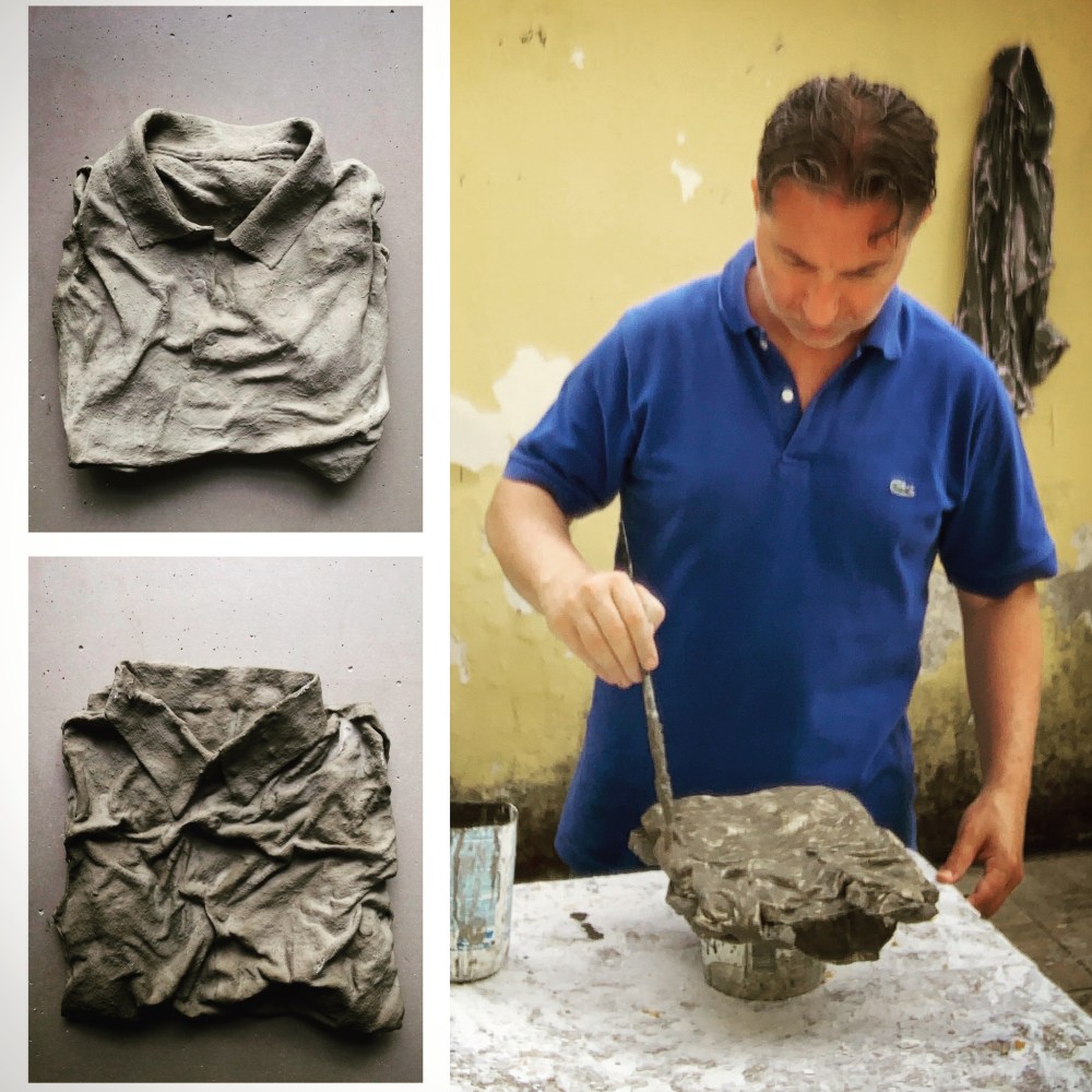 In this terrible year I worked exclusively on my concrete sculptures. For my concrete sculptures I use my personal clothes. During some artistic processes, in which I use plaster, resin and cement, I transform them into works of art to hang.