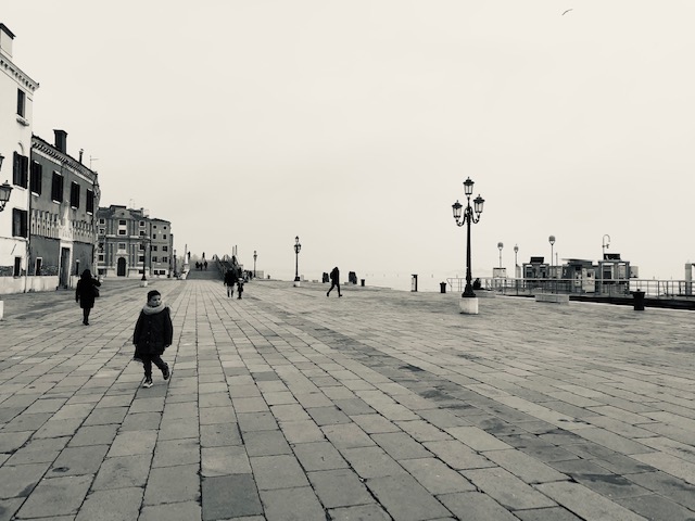 My first return to Venice at the tail end of another lockdown, and my head reels with oily exhaust fumes and I am nearly ecstatic. I am outside Mestre station, last outpost before the land bridge over the lagoon, and I have been breathing crisp clean country air for months. A train ride into town seemed risky, so I have driven along the autostrada past Padova to the coast, parked in a lot that is devoid of any sort of tourist presence. Italy is still closed off – again – and I have only just been allowed to cross into the Provincia di Venezia, thirty minutes away from my own. The city whoosh is bracing! Mestre is a pitstop on the way to the sinking city of canals, a rudimentary reality check full of Chinese bars and sleazy hotels, not far from the eyesore of Porto Marghera, where it’s unwise to walk at night. Nothing like Venice’s creamy marble facades and echoing footsteps along the water, where one has a sense of being cocooned by history, by fog, by the stories of the ages.